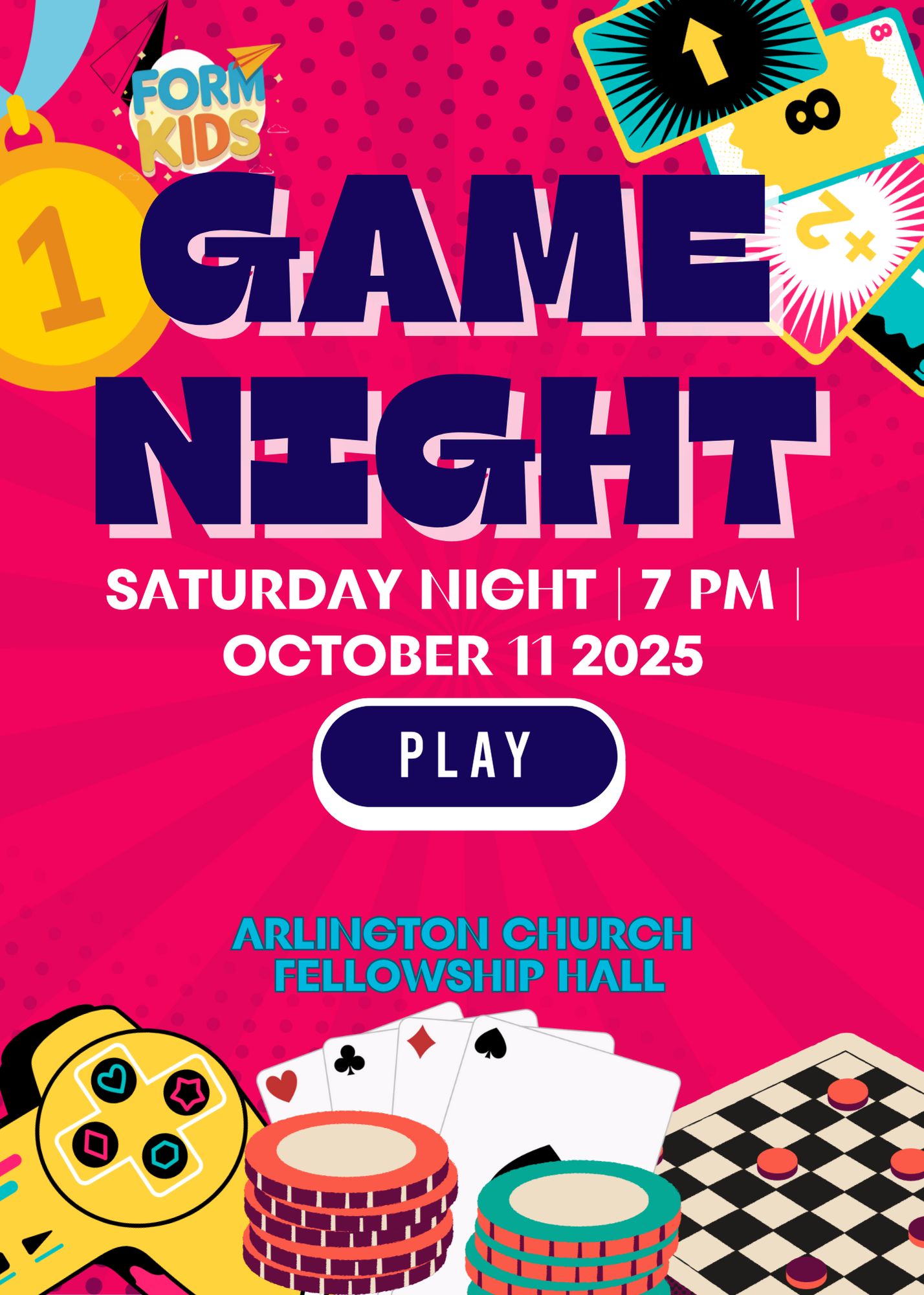Join us for a little friendly family competition! Bring your favorite board game, card game or any other game you would like to share. We will have an evening of games, snacks, and drinks to share. If you would like to bring your family’s favorite Saturday night snack to share, you are welcome to, but this is not required. Come ready to laugh, play and enjoy a good time with family and friends.