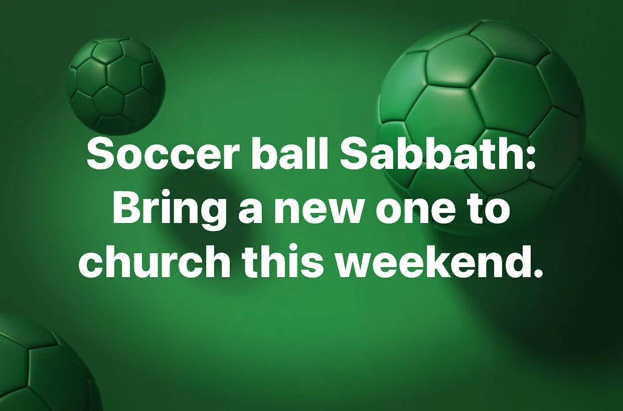 1. Bring a new soccer ball to church Sabbath. Ethan Francis will be collecting them for us.