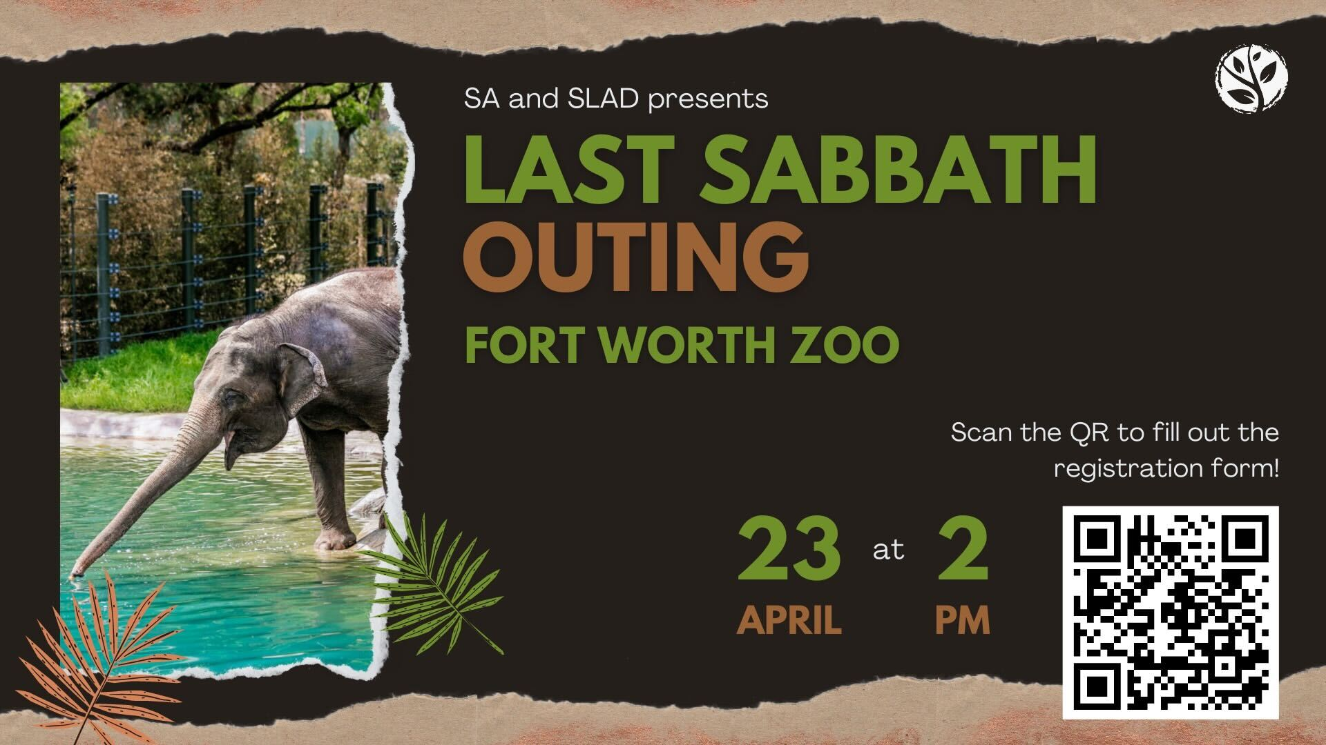 We’re collaborating with other DFW young adults for a Sabbath afternoon outing to the Fort Worth Zoo. If you are interested, click the above icon to complete the registration form. For more information contact Kyle Barrow at 301-395-1751.
