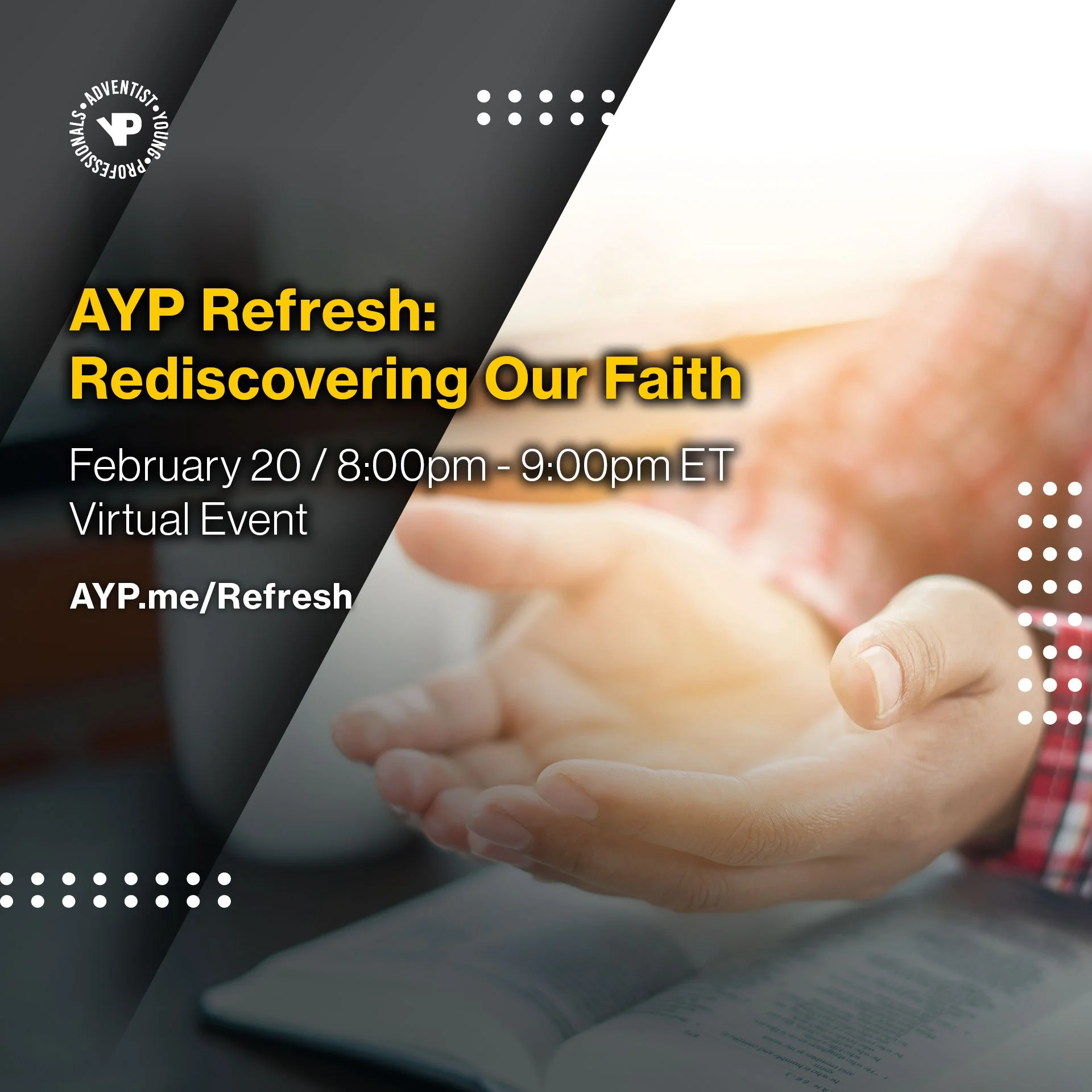 REDISCOVERING OUR FAITH // FEB 20, 7:00PM CST // AYP REFRESH VIRTUAL GROUP