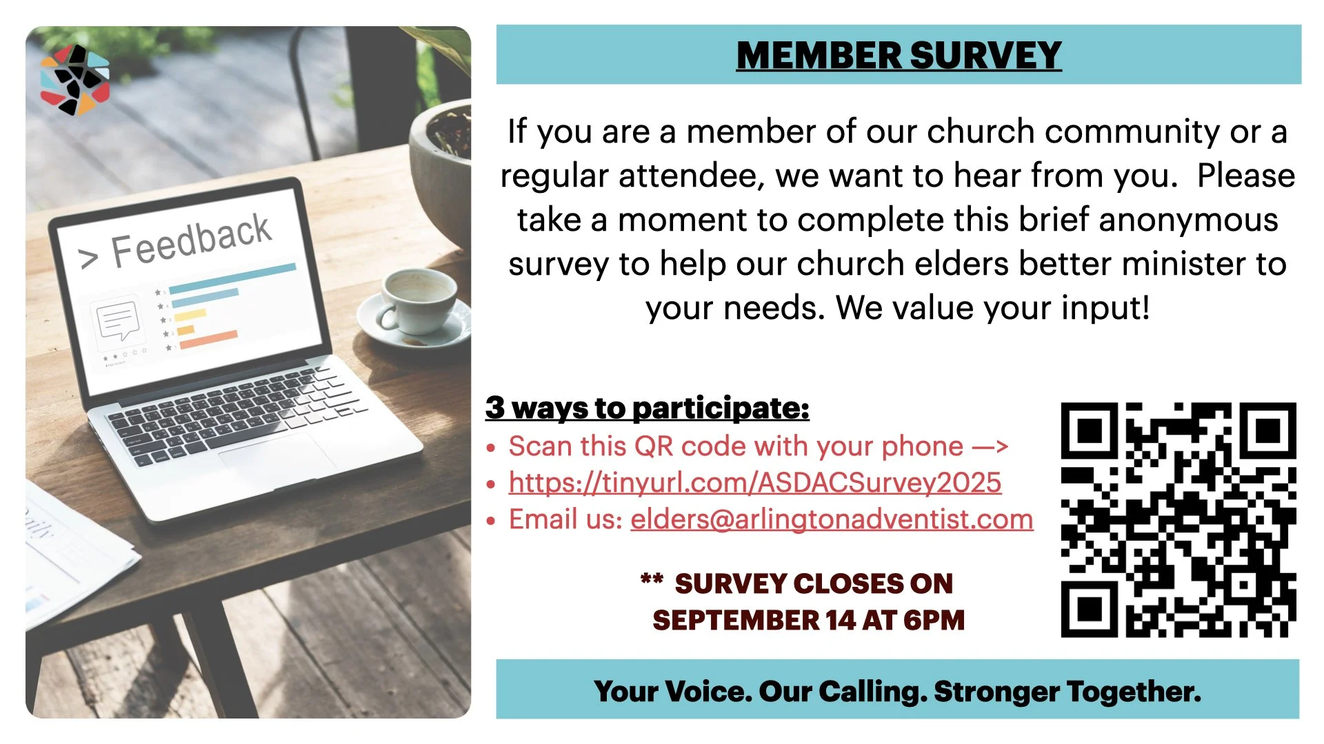 There will be no separate YG Church service Sabbath, September 13th, as we will be joining with the rest of the Arlington Adventist Church family, 11:30AM, at Burton Adventist Academy, 4611 Kelly Elliott Road. Please make plans for the joint worship on our academy campus.