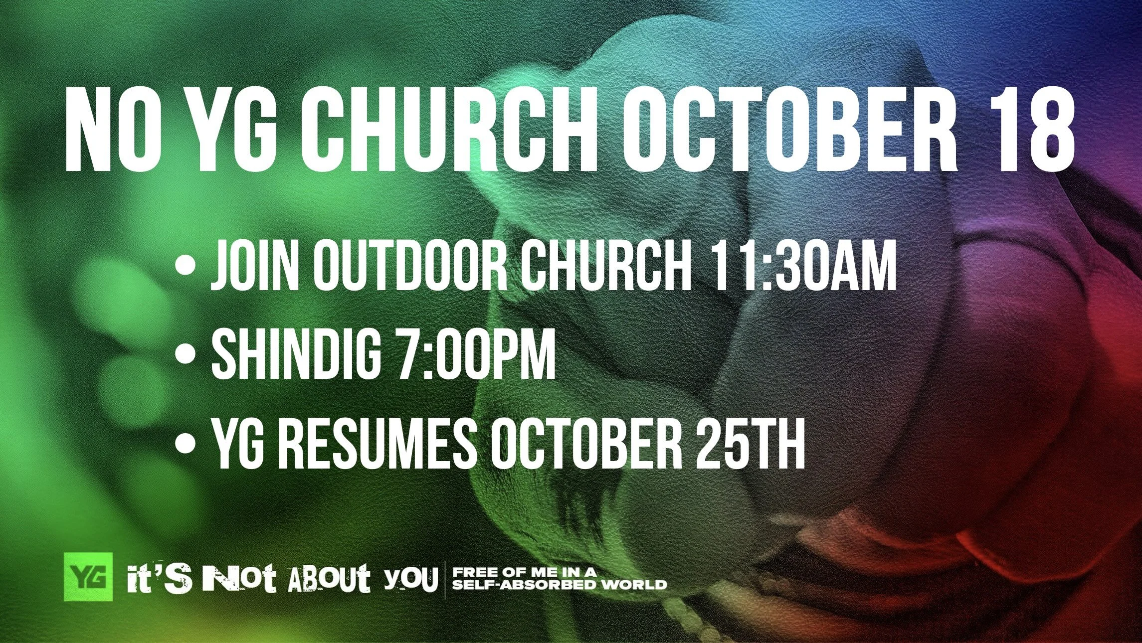 Join Younger Generation Church in their Fall series, It’s Not About You: Free of Me in a Self-absorbed World. Saturdays, 10:15AM [Central], tinyurl.com/yglivestream