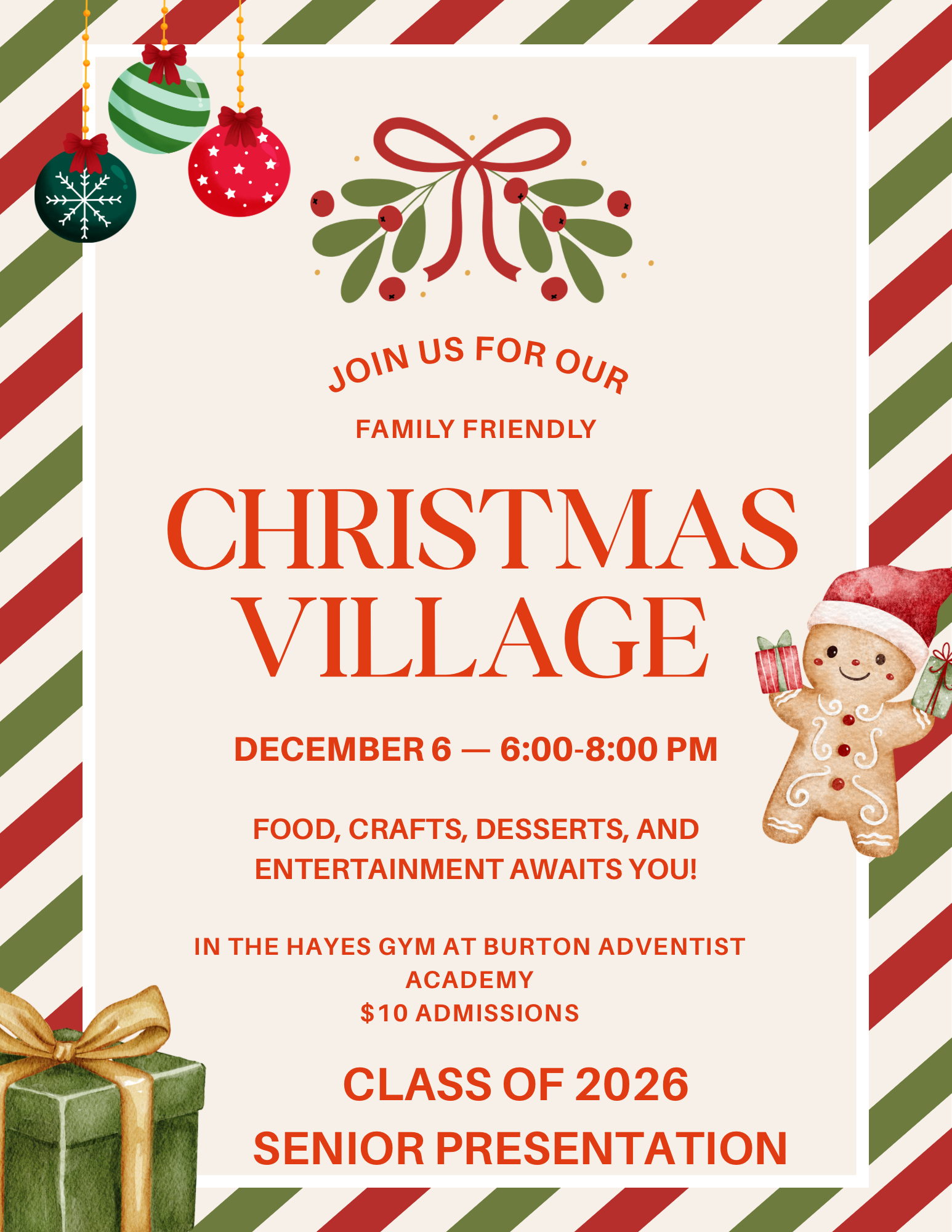CHRISTMAS VILLAGE // DEC 6, 6-8PM // $10 ADMISSION // BAA HAYES GYM