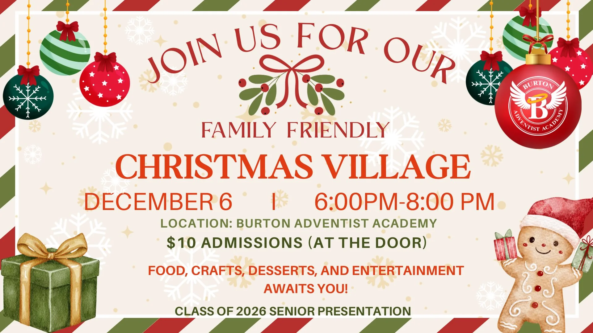CHRISTMAS VILLAGE // DEC 6, 6-8PM // $10 ADMISSION // BAA HAYES GYM