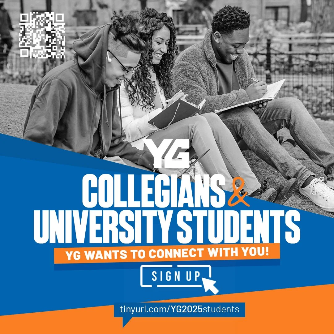 YG is looking to connect with all our students in college, university, and trade school. We want to pray for you, cheer you on, and we’re hoping to send you a care package from home next semester. Click the above icon to share with us your contact info.