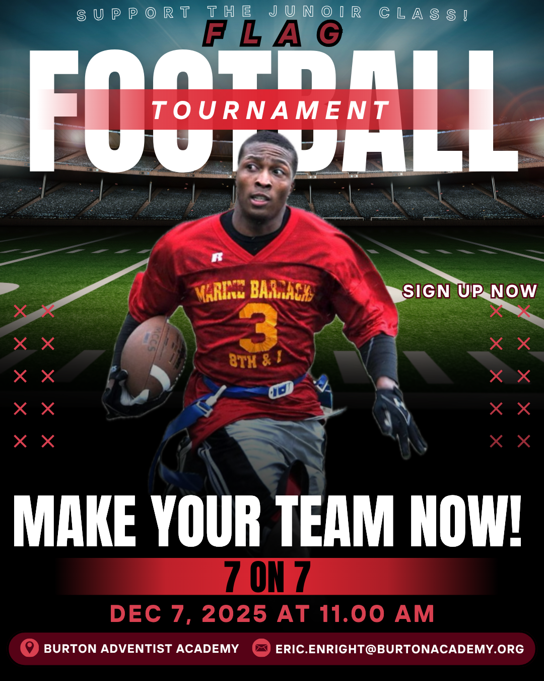 FLAG FOOTBALL TOURNAMENT // DEC 7, 11AM // BURTON ADVENTIST ACADEMY