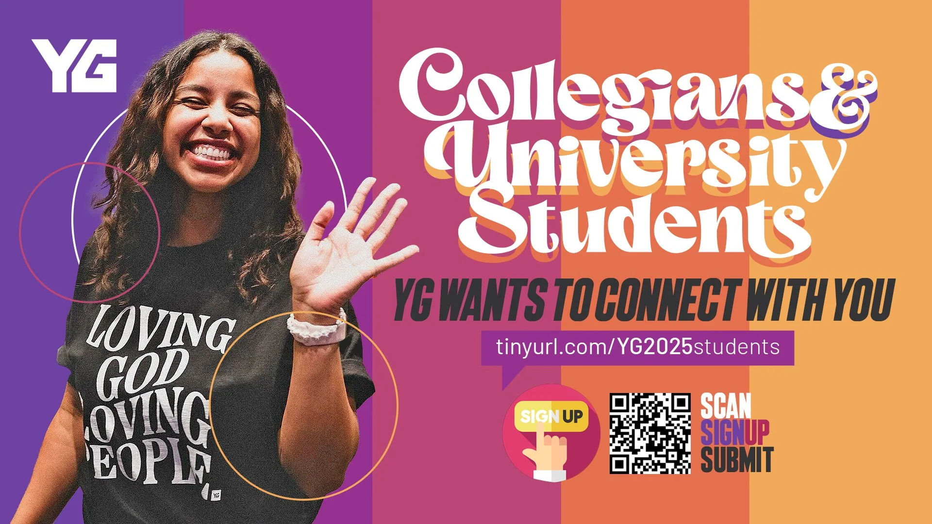 YG is looking to connect with all our students in college, university, and trade school. We want to pray for you, cheer you on, and we’re hoping to send you a care package from home next semester. Click the above icon to share with us your contact info.